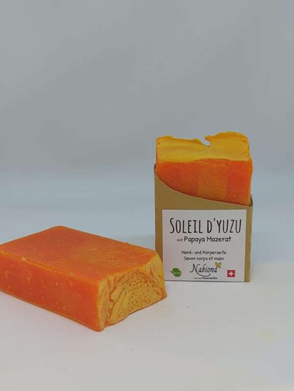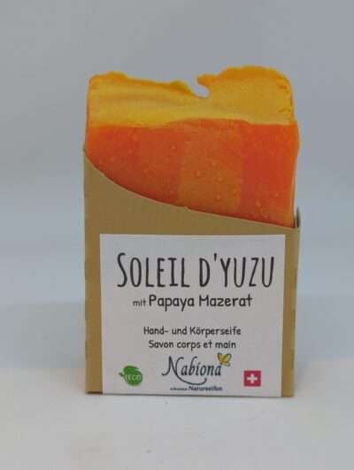 Soleil d’Yuzu ist die perfekte Wahl für alle, die sich eine erfrischende, belebende Pflege gönnen wollen. Diese Naturseife begeistert mit ihrem charakterstarken Duft nach Yuzu – einer spritzigen Kombination aus Limette, exotischer Grapefruit und knackiger Mandarine – und bringt Lebensfreude in den Alltag. Abgerundet durch ein feines Papaya Mazerat bietet sie ein einzigartiges Dufterlebnis, das Sinne und Stimmung positiv anspricht. Wer natürliche, wirkungsvolle und zugleich erfrischend duftende Pflege schätzt, wird diese Seife lieben.